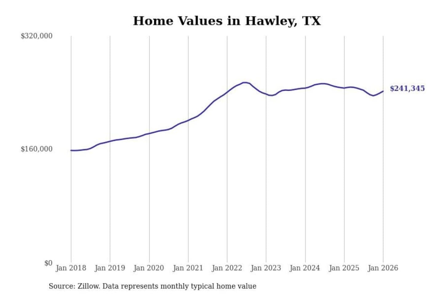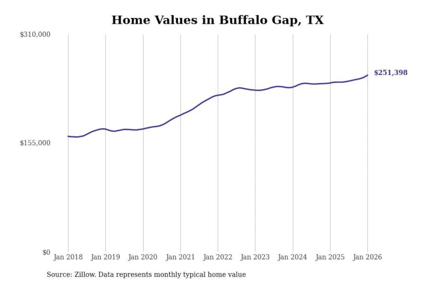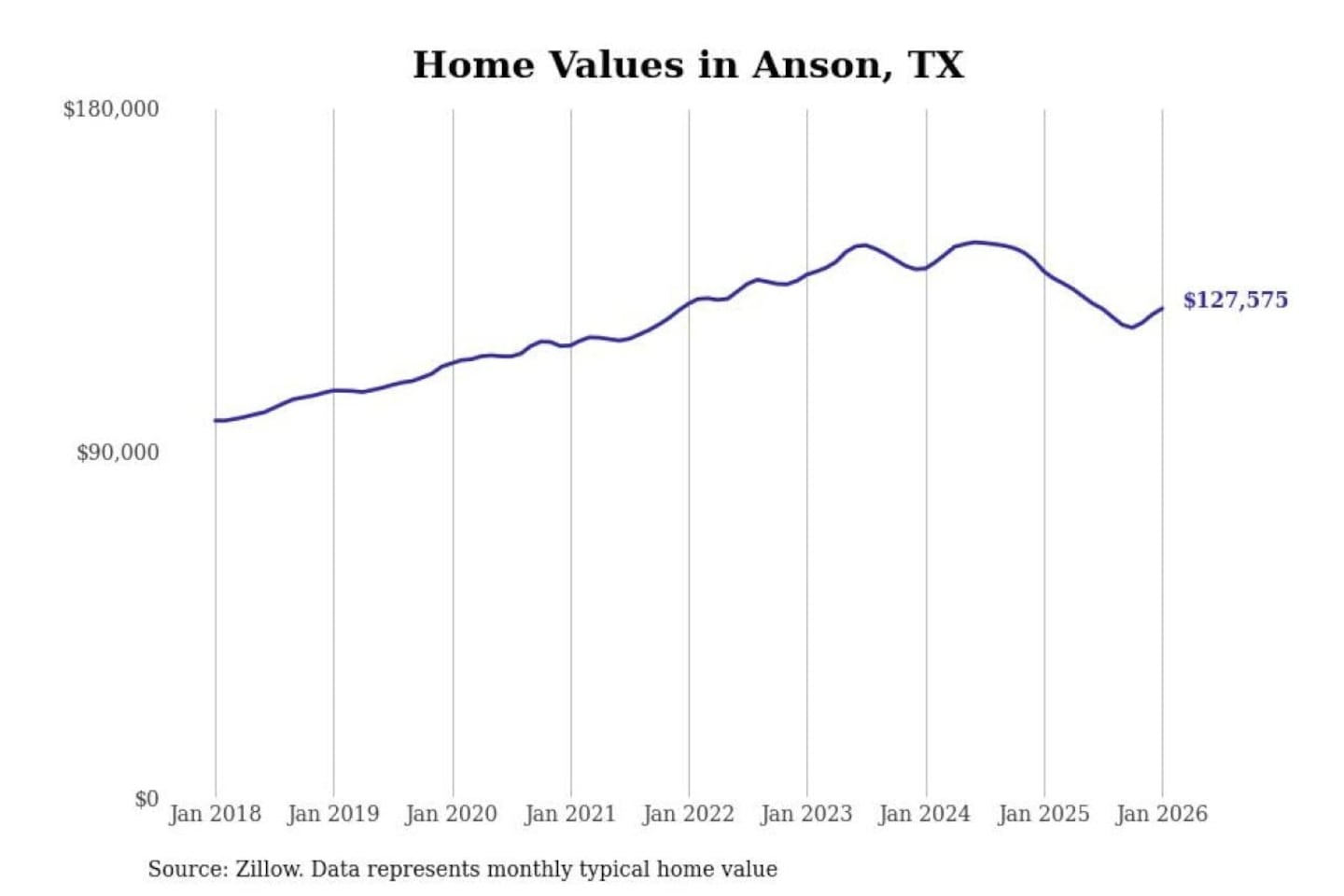 Stacker compiled a list of cities with the most expensive homes in the Abilene, TX metro area using data from Zillow. Charts show the monthly typical home value since January 2018.